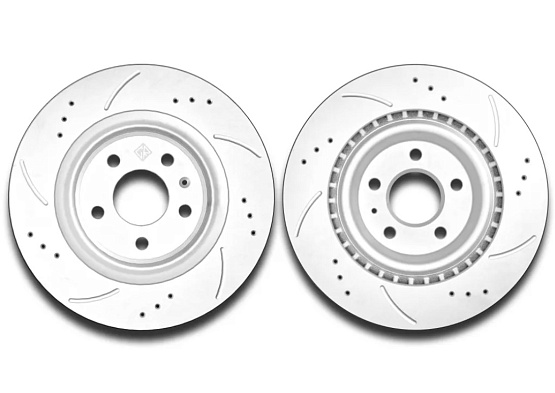 • Перфорация и слотирование: большинство дисков имеют сквозную или неполную перфорацию. Перфорация обеспечивает более лучшее охлаждение и удаление газа возникающего при трении, а слотирование помогает очищать поверхность от продуктов износа. В дисках Great применено узкое слотирование, что снижает уровень шума при торможении.