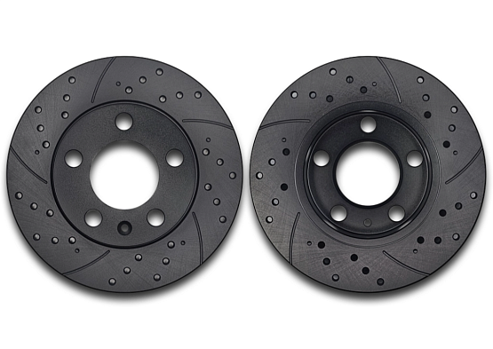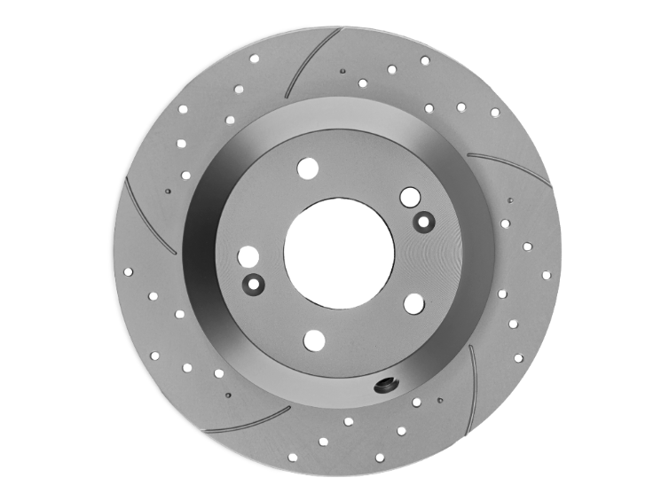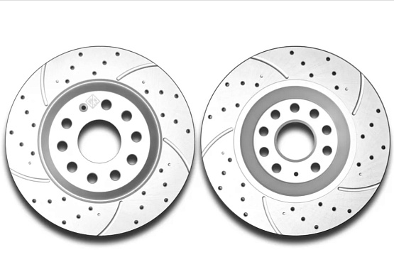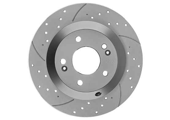 - Перфорация и слотирование: большинство дисков имеют сквозную или неполную перфорацию. Перфорация обеспечивает более лучшее охлаждение и удаление газа возникающего при трении, а слотирование помогает очищать поверхность от продуктов износа. В дисках Great применено узкое слотирование, что снижает уровень шума при торможении.