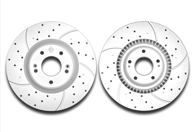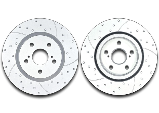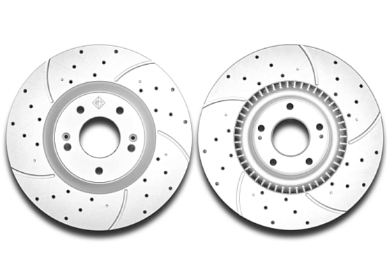 - Перфорация и слотирование: большинство дисков имеют сквозную или неполную перфорацию. Перфорация обеспечивает более лучшее охлаждение и удаление газа возникающего при трении, а слотирование помогает очищать поверхность от продуктов износа. В дисках Great применено узкое слотирование, что снижает уровень шума при торможении.