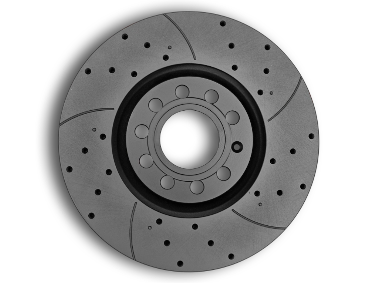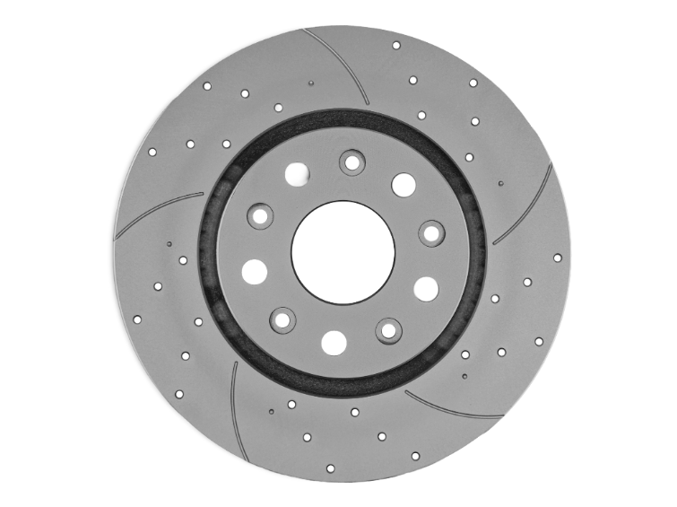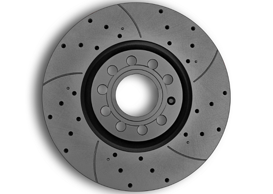 - Перфорация и слотирование: большинство дисков имеют сквозную или неполную перфорацию. Перфорация обеспечивает более лучшее охлаждение и удаление газа возникающего при трении, а слотирование помогает очищать поверхность от продуктов износа. В дисках Great применено узкое слотирование, что снижает уровень шума при торможении.