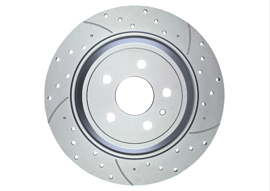 - Перфорация и слотирование: большинство дисков имеют сквозную или неполную перфорацию. Перфорация обеспечивает более лучшее охлаждение и удаление газа возникающего при трении, а слотирование помогает очищать поверхность от продуктов износа. В дисках Great применено узкое слотирование, что снижает уровень шума при торможении.